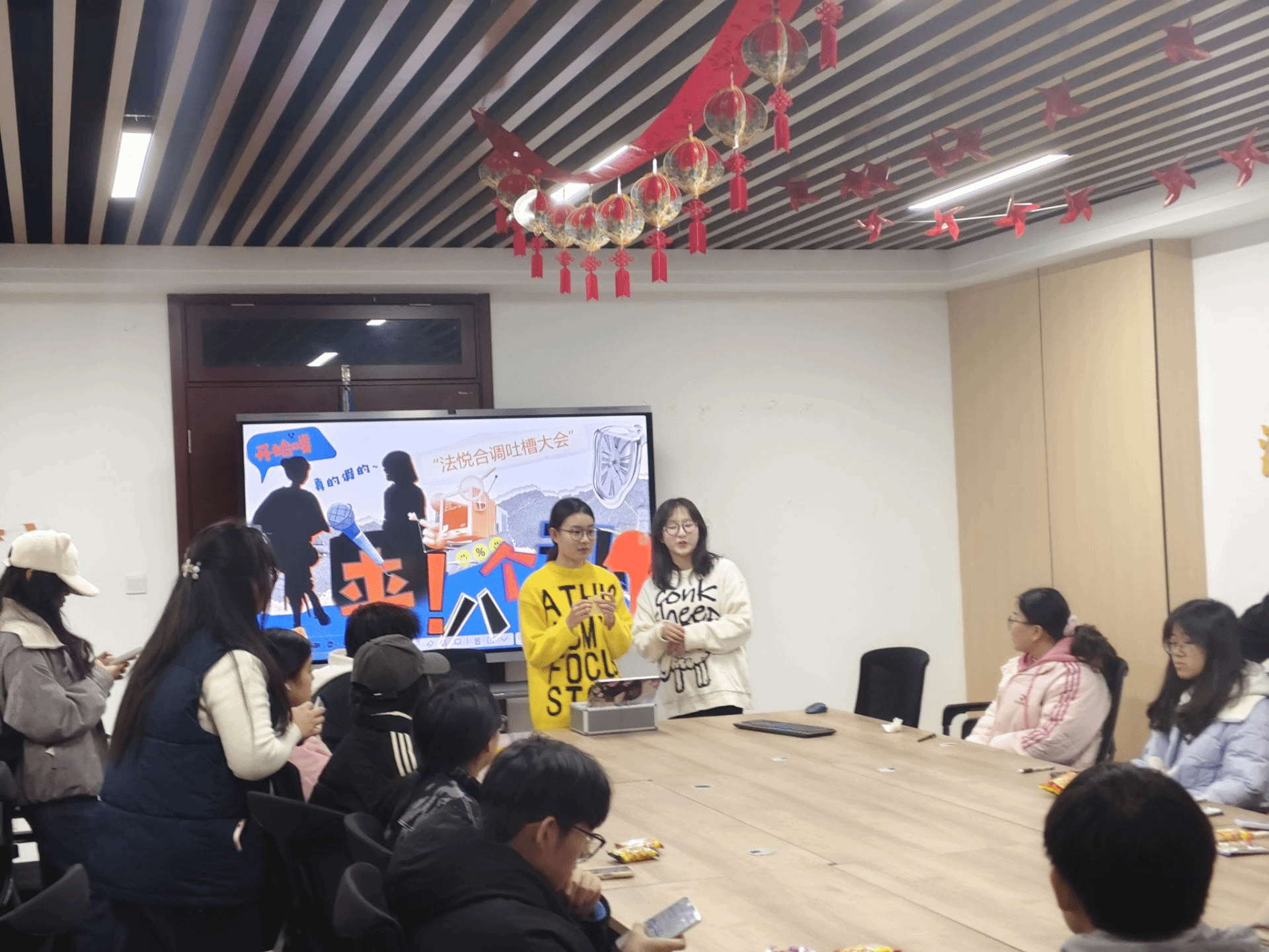 活动以“法在身边,悦在心头——合调吐槽,共话法治”为主题,以“吐槽”的形式,搭建一个释放压力、交流互动、学习法律知识的轻松平台。针对同学们在日常生活中常遇到的宿舍矛盾、消费纠纷、兼职争议等法律相关问题,活动通过趣味互动引导大家理性看待、巧妙化解。